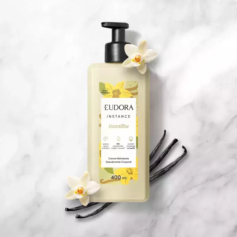 O Creme Hidratante Desodorante Corporal Instance Baunilha traz uma fragrância suave e deliciosa!